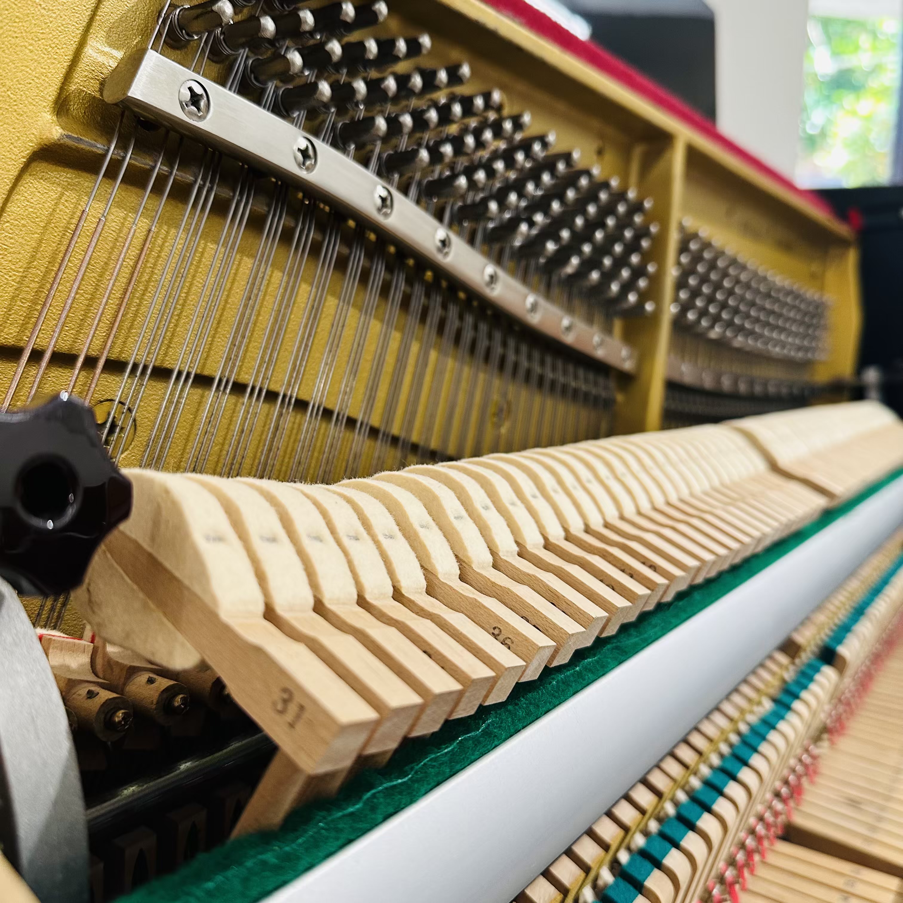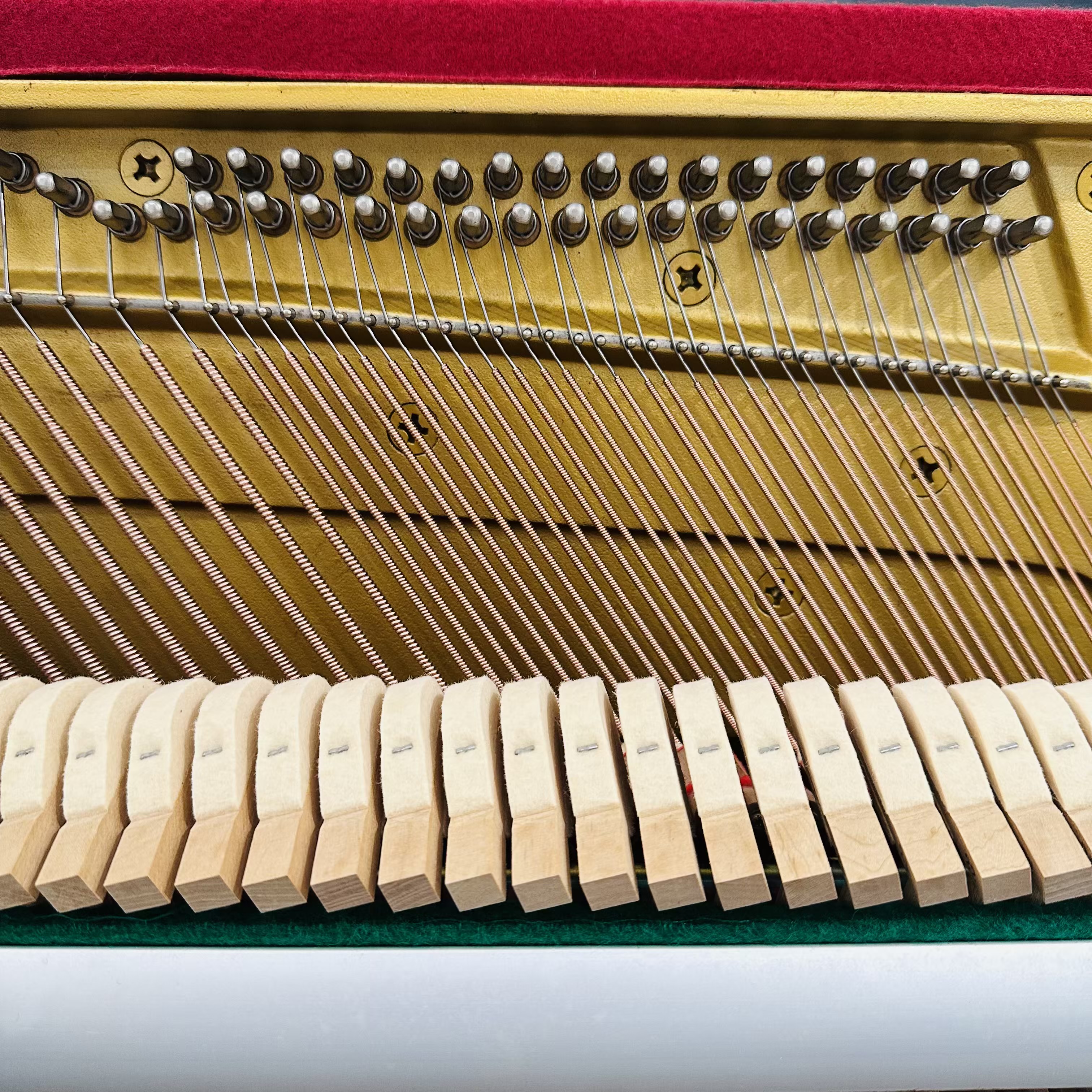 打造鋼琴時大約會用到 8,000 種零件,其中許多零件使用天然材料製成,它們的外觀可能大不相同且擁有屬於自己的個性。為了發揮每種材質的特性並創造出理想的音色,Yamaha 針對每種材料進行深度廣泛的研究。每台鋼琴擁有的藝術特質在於其傳統工藝和最新生產技術間達到巧妙精密的平衡,而同時傳統工藝得以發揮其專屬特質,但最新技術可確保一致的精準特性